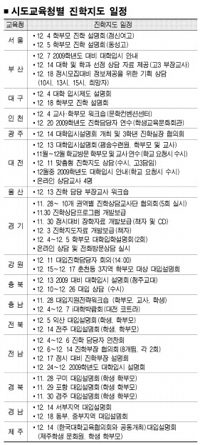 진학상담은 고액의 상담비를 부담하면서 사설 입시기관에 의존해온 관행을 벗어날 수 있도록 시도교육청이 주관해 대입 경험이 많은 현직 교사를 중심으로 지역별로 진행된다. 진학상담 교사단은 대부분 고등학교 3학년 담임을 5년 이상 경험하고 현재 진학지도를 책임지고 있는 진학 담당 부장들로 구성됐다.