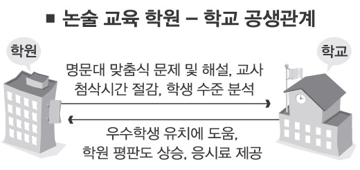 일부에서는 학부모와 학생들의 논술 부담을 학원에서 덜어 주고, 개인별로 학원에서 강의를 듣는 것보다 비용도 저렴하다는 반응도 나온다.