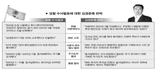 검찰의 BBK 수사결과 발표 이후 후유증이 계속되고 있다. 김경준씨와 검찰은 발표 하루 만인 6일 ‘장외 공방’을 벌였다.
