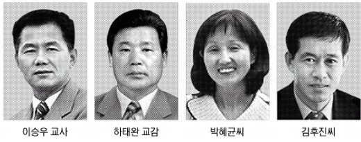 한편 이날 시상식에는 다양한 방과후학교 프로그램을 통해 사교육이 필요 없는 학교로 만든 경기 김포 석정초등학교 하태완(54) 교감이 전체 대상을 받았다. 자녀교육 부문에서는 끊임없는 대화를 통해 고1 딸에게 인생의 길을 열어준 박혜균(43)씨가, 자기능력개발 분야에서는 검정고시를 거쳐 박사 과정 공부까지 하면서 용접 분야의 장인으로 인정받고 있는 김후진(50)씨가 각각 최우수상을 받았다.