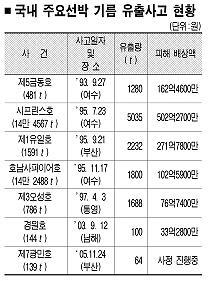 ●바지선과 부딪쳐 오일탱크 3개 구멍