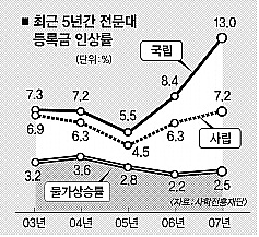 ●전문대 등록금 인상률 4년제보다 높아