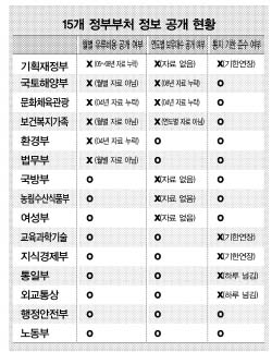기한내 요청자료 공개한 곳 15개 중앙부처중 단 2곳뿐