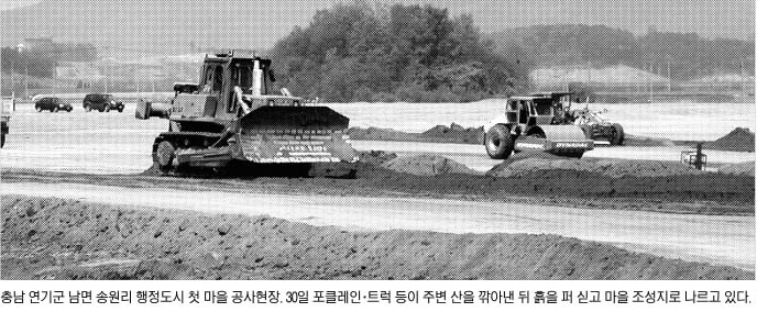 연기군 남면 행정도시에는 중심행정타운과 첫 마을, 아파트단지 등 공사가 한창이다. 중심행정타운이 들어서는 남면사무소 앞은 전쟁터 같았다.