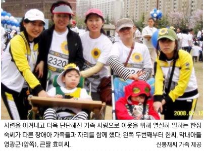 그러나 고난은 이들 부부의 무릎을 꿇리지 못했다. 이들은 오히려 인천장애인부모회 회원으로 누구보다 열성적으로 일하고 있다. 한씨는 장애를 지녔음에도 불구하고 장애자녀 양육경험이 부족한 저소득층 가족을 위해 돌보미로 일한다. 남편 신씨 역시 장애가족의 아버지 역할이라는 자신의 경험을 다른 장애아 부모와 나누고 있다. 최근에는 ‘아빠사랑모임’도 결성했다. 남편 신씨는 “끝나지 않을 것 같던 시련들이 오히려 우리 부부와 가족을 단단히 만들고, 다른 사람까지 돌보게 했다. 신앙생활이 절망을 좋은 방향으로 이끈 것 같다.”고 말했다.
