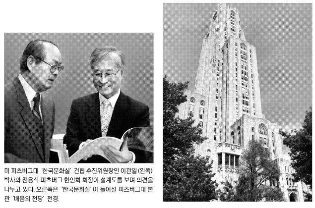 “웬만한 유럽국가는 물론 일본과 중국, 심지어 한국보다 훨씬 못사는 아프가니스탄이나 아르메니아도 ‘문화실’을 두고 있습니다. 더 이상 주저할 수만은 없다고 생각했습니다.”미국의 대표적 대학도시인 펜실베이니아주 피츠버그시 한 복판에 한국 문화유산의 우수성을 알리는 전시실이 마련된다. 현지 교민들이 피츠버그대 본관 ‘배움의 전당(Cathedral of Learning)’에 ‘한국 문화실’ 건립을 추진하고 있는 것이다.