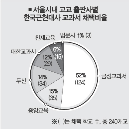 교육계가 ‘좌편향’ 역사교과서 문제로 사분오열되고 있다. 시·도 교육청은 금성출판사에서 발행한 한국근·현대사 교과서를 주문한 일선 고교장들을 불러 교체를 요구하거나, 재선정 계획 및 결과보고를 요구하고 있다. 학교에서는 교장과 역사교사들간의 갈등도 만만찮다.●“11월말까지는 기다려 볼 것”