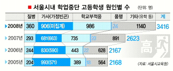 서울 고교생 매년 600명 안팎 가정형편으로 자퇴