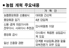 농협 개혁위원회는 9일 이같은 내용을 뼈대로 하는 농협 개혁방안을 발표했다. 농림수산식품부는 개혁안을 토대로 2월 정기국회에서 농협법 개정을 추진할 방침이다.