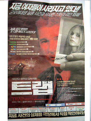 영화홍보사 ‘이슈’는 30일 “전날 개봉한 영화 ‘트랩’의 홍보 포스터에 ‘군포 여대생 실종 사건’이란 문구를 사용했다.”고 밝혔다.이 포스터는 지하철 무가지 등에 실리면서 많은 사람들이 접한 상태다.