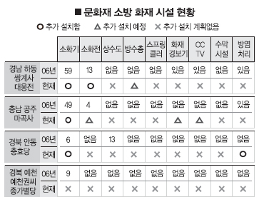 문화재청 관계자는 “개정된 ‘소방시설 설치유지 및 안전관리에 관한 법률’이 지난 6일에야 공포돼 이제부터 시설을 확충할 계획”이라고 말했다.