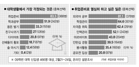 ●새내기 83.3% “취업이 제일 고민”
