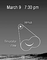 지난 7일 금성은 태양이 지평선 너머로 사라진 뒤 3시간 안에 저녁하늘에 모습을 드러냈다.하지만 12일에는 2시간 뒤에 나타나고 21일이 되면 태양이 사라진 지 1시간 만에야 모습을 드러내게 된다.마침내 25일에는 팔을 들어 지평선을 가리켰을 때