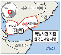 예멘 남동부 하드라마우트주(州)의 고대 도시 세이윤 지역에서 15일 오후 5시55분(한국시간 오후 11시55분)쯤 원인 모를 폭발물이 터져 한국인 관광객 4명(예멘인 1명 제외)이 숨지고, 3명이 다치는 참변이 발생했다. 독일 DPA 통신 등 현지 외신들은 예멘 소식통들의 말을 인용, 이날 참변이 테러조직 알 카에다 소속인 18세 미만 남성의 자살폭탄 테러에 의한 것이라고 전했다.