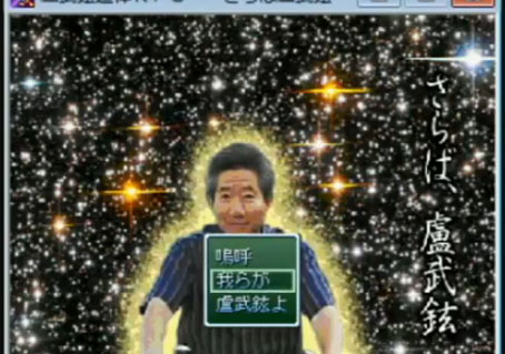 결국 노 전 대통령은 아소 다로 일본 총리에게 사죄를 하게 되고 ‘노 전 대통령 위대한 승리, 경험치 20 증가’라는 설명이 나오며 동영상은 끝난다.