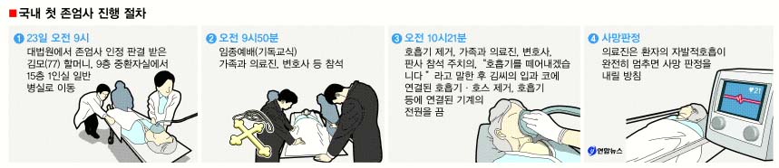 어제 오전 10시21분 첫 존엄사 집행… 자가호흡에 병원측 영양공급 계속