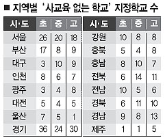 교과부가 이날 선정한 457개 사교육 없는 학교에는 구정고처럼 사교육이 성행하는 지역에 있는 학교들은 물론 도시 저소득층 밀집지역, 농산어촌 등 사교육 경감을 위해 공교육을 내실화하려는 학교도 포함됐다.