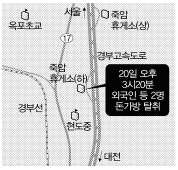 20일 오후 3시20분쯤 충북 청원군 현도면 경부고속도로 하행선 죽암휴게소에서 수천만원이 든 현금 수송업체의 돈가방이 털려 경찰이 수사에 나섰다.