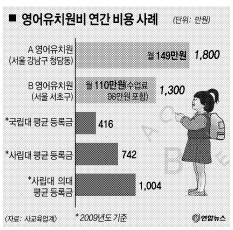 서울 강남의 영어 유치원 연간 비용이 대학 등록금의 최대 4배인 것으로 나타났다. 국민들이 교육에 쏟는 돈도 해마다 3조원씩 늘어나고 있다.