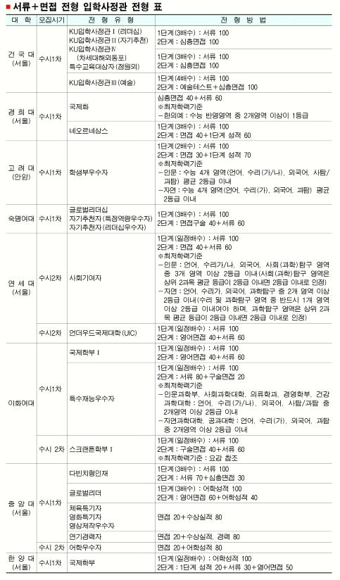 학생의 잠재력을 보고 선발한다고 하지만 대부분 대학들은 학생부 성적과 어학 성적, 논술 성적도 반영하고 있다. 대학마다 전형방법은 다르지만 내신 성적은 여전히 학생의 ‘성실성’을 평가하는 중요한 기준이 된다.