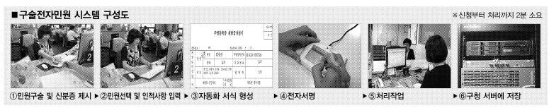 행정관청에서 까다로운 신청서류 대신에 말만 하면 민원 업무를 신속히 처리해 주는 전자민원 시대가 열렸다. 단순한 아이디어가 큰 효율성을 가져온 사례로 주목된다.서울 노원구는 민원인이 말하는 내용을 구 직원이 컴퓨터 상에 입력하면서 동시에 민원서류를 발급해 주는 구술전자민원서비스(일꾼시스템)를 개발해 지난 1일부터 19개동 주민센터에서 시행, 민원처리 시간을 10분의 1로 단축했다고 3일 밝혔다.