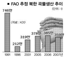 WFP는 2400만명의 북한 주민에게 기본적인 식량을 충족시키려면 올해 180만t에 가까운 식량을 수입하거나 원조를 받아야 하고, 화학비료 부족으로 10월 추수 결과도 좋지 않을 가능성이 높아 식량난이 내년에도 연장될 가능성이 크다고 전망했다.