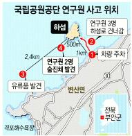 이들은 해양연구센터에 근무하는 해양생태조사직으로 따개비 등 암반지대에 서식하는 무척추 동물을 조사하기 위해 22일 오전 11시30분쯤 하섬에 들어갔다 나오다가 갯골(물웅덩이)에 빠졌거나 길을 잃어 밀물에 휩쓸렸을 것으로 추정된다.