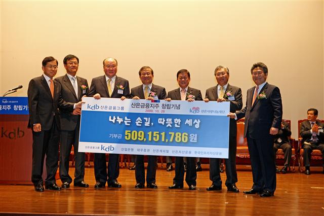 산은금융그룹은 29일 사회공헌 활동을 확대 운영하기로 하고 자회사인 산업은행, 대우증권, 산은캐피탈, 산은자산운용, 한국인프라자산운용 등 5개사 임직원들이 급여 반납 등으로 모은 5억 900만원을 ‘산은사랑 나눔재단’에 기부했다고 밝혔다.
