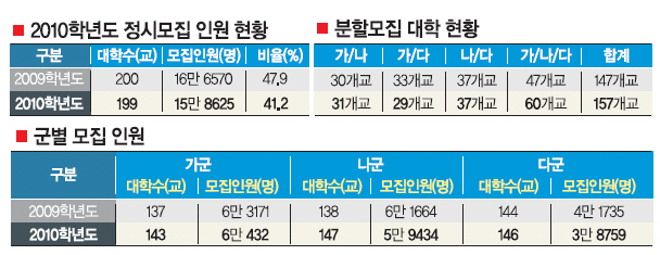 16일 한국대학교육협의회가 발표한 2010학년도 정시모집 주요요강을 분석한 결과다.
