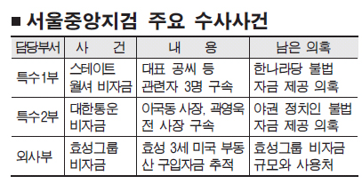 또 부실수사 의혹이 제기됐던 효성그룹 비자금 사건에 대해 지검 외사부(부장 함윤근)는 최근 미국 고가 부동산 구입 자금출처를 파악하기 위해 효성 조현준 사장과 조현상 전무, 효성 아메리카의 유모 상무, 효성 법인 등 150여개의 계좌 추적에 돌입했다.