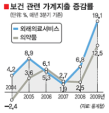 고령화로 보건의료 수요가 늘어난 데다 신종 플루 때문에 병원을 찾는 사람들이 늘면서 가계의 의료비 부담이 급증하고 있다.