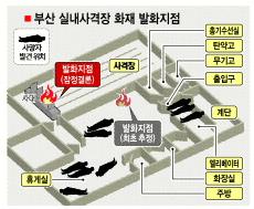 부산 국제시장내 실내 실탄사격장 화재는 사격장내 권총을 발사하는 사대 안쪽에서 폭발에 의해 일어난 사고일 가능성이 높은 것으로 파악됐다. 경찰은 이에 따라 폭발을 유발한 인화성 물질과 화재원인을 규명하는 데 수사력을 모으고 있다.김영식 수사본부장은 18일 가진 기자회견에서 “3차례 현장 감식 결과 사격장 화재는 격발장 사대 안쪽에서 강한 폭발이 일어나면서 발생한 것으로 보이며 최초 발화지점은 격발장 사대 안쪽인 것으로 판단된다.”고 말했다. 경찰은 당초 휴게소 소파부근을 첫 발화지점으로 꼽았었다.
