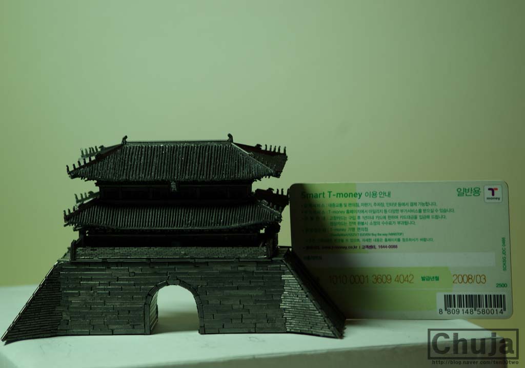 그는 신용카드보다 약간 큰 ‘샤프심 숭례문’에 야간조명을 ‘심는’ 세심함도 잊지 않았다.LED 손전등에서 전구를 떼어내 약간의 공정을 거친 뒤 숭례문을 빛나게 만들었다.