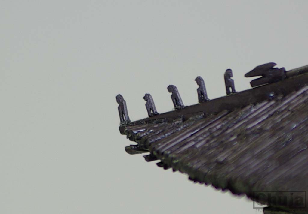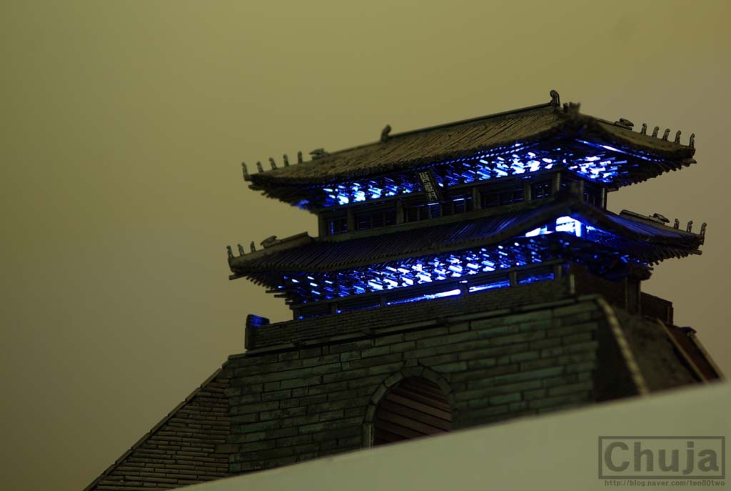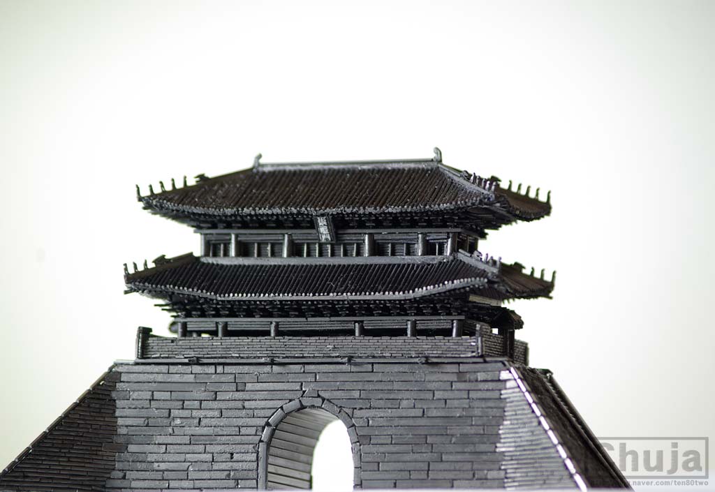 이 작품은 샤프심이라는 설명을 붙이지 않았다면 진짜 숭례문이 복원됐나할 정도로 착각이 들 정도로 정교하다.팔작지붕의 유려한 곡선도 비교적 잘 나타났고,추녀마루에 있는 잡상과 용머리 또한 모양새가 제법이다.