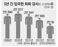 E2 비자로 입국하는 이들을 대상으로 한 당국의 취업교육이 없다는 것도 문제다. 출입국관리사무소 관계자는 “E2 비자로 입국하는 이들은 학사학위 이상 전문 인력이기 때문에 별도 취업교육이 의무화돼 있지 않다”면서 “원어민 강사의 계약이 중도해지됐을 경우 귀책 사유를 살펴 고용주의 잘못이면 국내 체류를 6개월 연장해 준다”고 말했다. 그는 이어 “대부분 강사와 학원장 입장이 첨예하게 엇갈리는데 원어민 강사의 불량한 태도로 피해를 보는 학원장들도 더러 있다”고 덧붙였다.