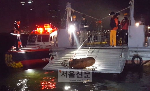 앞서 한강사업본부는 지난 10일 한강철교 인근 수중 청소를 하던 중 포탄으로 추정되는 물체를 발견, 경찰에 신고했고 군과 경찰은 폭발 가능성에 대비해 이날 새벽 1~2시쯤 한강철교 교통을 통제하고 해체 작업을 진행했다.