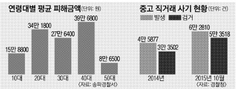 경찰청에 따르면 중고거래 사기 접수 건수는 지난해 4만 5877건에서 올해 10월까지 6만 2810건으로 40%가량 증가했다. 피해 건수가 증가하자 경찰도 악성 사이버 범죄 특별 단속을 벌여 검거율을 지난해 73.0%에서 올해 85.2%로 높였다.