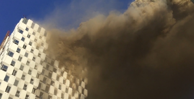 지하철 2호선 서울대입구역 사거리에 있는 대형 신축 건물에서 화재가 발생해 시민들이 대피하는 소동이 벌어졌다.