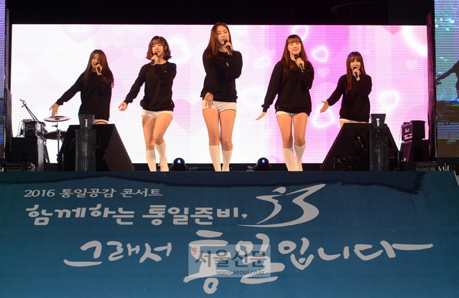 28일 오후 서울 중구 서울마당에서 열린 2016 통일공감 콘서트에서 걸그룹 여자친구가 공연을 하고 있다.