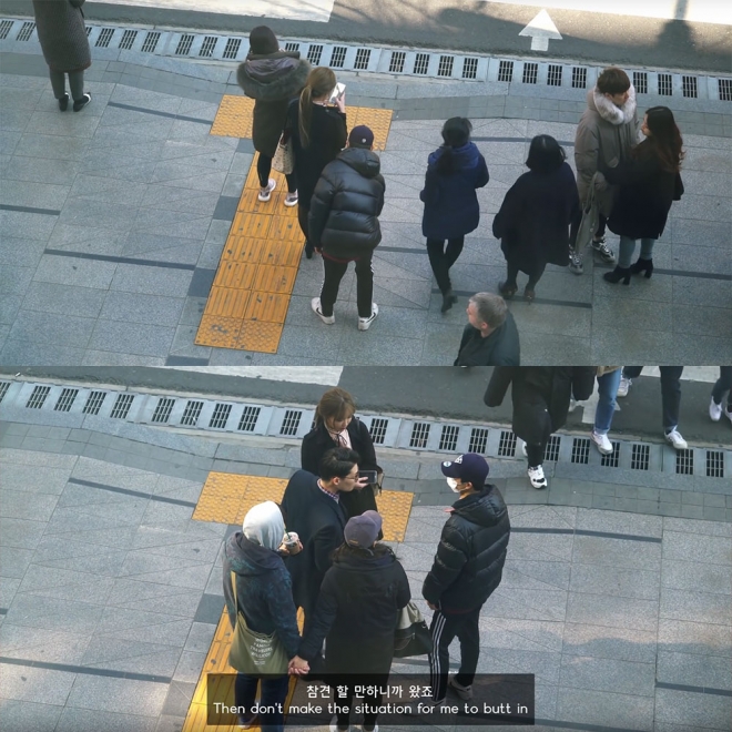 이에 겨울과 스태프는 도촬을 한 것을 두고 승강이도 벌여봤다. 이 모습을 뒤에서 조용히 지켜보던 한 남성은 스태프에게 다가가 “왜 그러시는지 모르겠는 데 문제가 있으면 경찰서를 가라”면서 “오해 살 거 아니면 바로 (사진첩)을 보여줘라”고 말했다. 스태프는 “아시는 분이냐”며 따졌지만, 남성은 “참견할 만하니까 왔다”며 맞섰다.