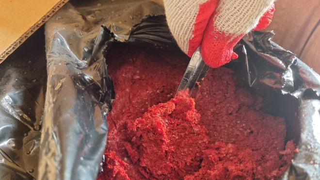 다진 양념으로 위장한 중국산 고춧가루. 해양경찰청 제공.