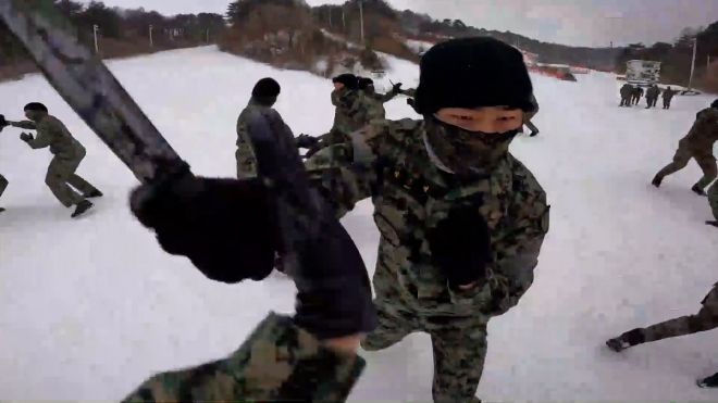 육군 특전사는 이달부터 오는 3월까지 부대별 9박10일 일정으로 강원 평창군 황병산 일대 동계훈련장에서 체감온도 영하 20도를 밑도는 혹한을 뚫고 설한지 극복 훈련을 하고 있다.