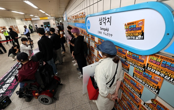 서울교통공사는 이날 오전 트위터(SNS)에 안내글을 올리고 “오늘 8시부터 4호선에서 전국장애인차별철폐연대의 장애인 권리예산 확보를 위한 지하철 타기가 예정되어 있다”고 밝혔다.