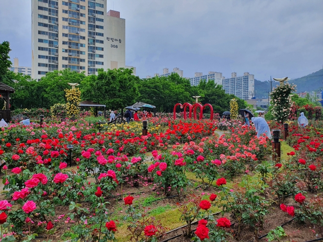 대구 달서구 이곡장미공원은 대구 대표 장미명소다. 크기와 색상이 다양한 120여 종의 장미가 반겨주며, 조성 후 10여 년 동안 시민들의 발길이 이어지고 있다. 5월20일부터 22일까지 3일간 ‘장미꽃 필 무렵’ 축제도 개최 예정이다.