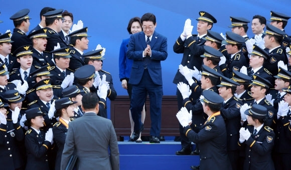 이 대통령은 성적 우수자들에게 상장과 메달을, 임용 대표자들에게 계급장을 직접 수여했다. 한 경찰관은 이 대통령과 악수하며 “믿고 의지할 수 있는 경찰이 되겠다”고 큰 목소리로 다짐하기도 했다.