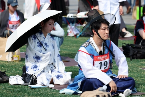 사회 [포토] 광화문 멍때리기 대회 입력 2026-04-14 17:13 수정 2026-04-14 17:13 기사 읽어주기 다시듣기 글씨 크기 조절 글자크기 설정 닫기 글자크기 설정 시 다른 기사의 본문도 동일하게 적용 됩니다. 가 가 가 가 가 프린트 공유하기 공유 닫기 페이스북 네이버블로그 엑스 카카오톡 밴드 https://www.seoul.co.kr/news/society/2026/04/14/20260414800010 URL 복사 댓글 0 14일 서울 광화문 광장에서 열린 2026 광화문 멍때리기 대회에서 참가자들이 기량을 뽐내고 있다.연합뉴스 Copyright ⓒ 서울신문 All rights reserved. 무단 전재-재배포, AI 학습 및 활용 금지 Q. 기사를 끝까지 읽으셨나요? 이제 AI 퀴즈로 기사의 핵심 내용을 점검해보세요. 2026 광화문 멍때리기 대회가 개최된 장소는? 광화문 광장 여의도 공원