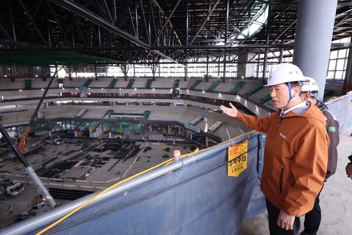 오세훈 서울시장이 15일 도봉구 창동의 서울아레나 공사 현장을 찾아 “서울아레나는 동북권 발전 견인차”라고 말했다. 서울아레나는 스탠딩석을 포함해 최대 2만 8000명까지 수용할 수 있는 K-팝 전용 공연장으로 2027년 3월 준공 예정이다. 이어 2027년 5월에는 첫 공연을 선보일 예정이다.