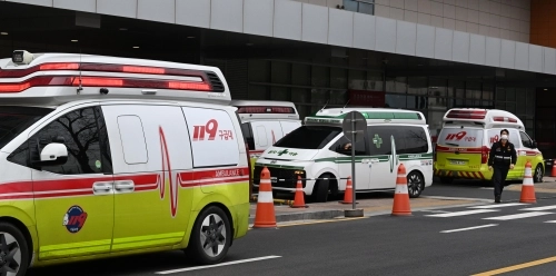 구급차들이 응급실앞에 도착해 있다. 도준석 전문기자