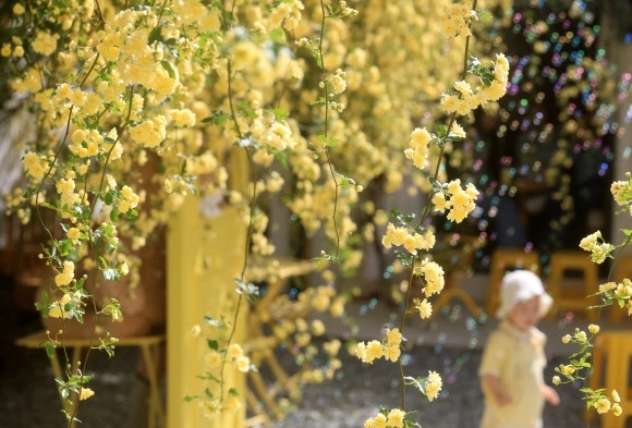 덩굴성 장미인 목향 장미는 주로 5월에서 6월 사이에 피어나고, 꽃말은 ‘우아함, ’온화함‘, ’숨겨진 아름다움‘의 뜻을 담고 있다.