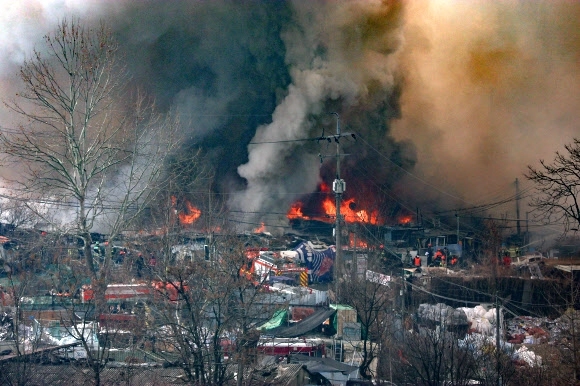 불이 야산으로 확대되지 않도록 대응 단계를 올리고 인력을 추가 투입했다는 것이 소방 측 설명이다. 현재 불은 구룡마을 5지구로도 번지고 있는 것으로 파악됐다.
